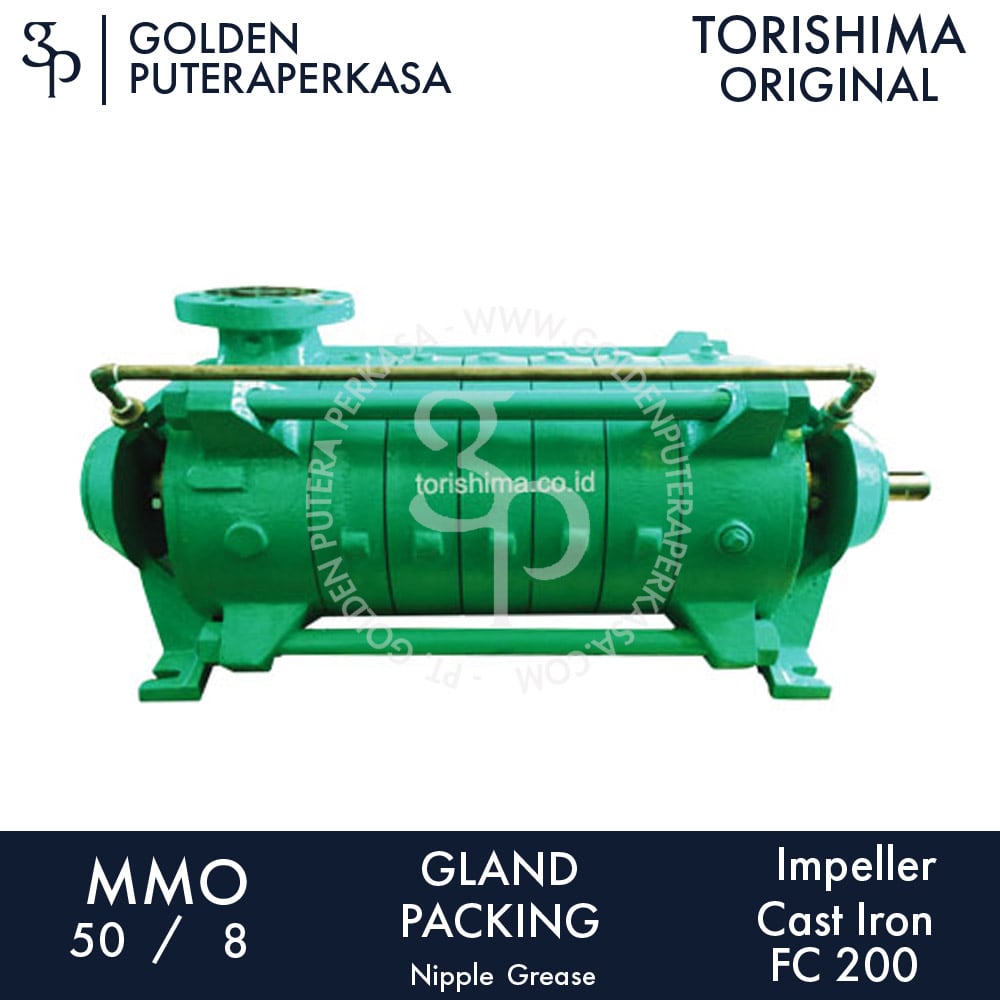 TORISHIMA MMO 50/8 adalah pompa sentrifugal tekanan tinggi yang terdiri dari beberapa ring section. Pompa ini cocok untuk media bersih yang bebas dari partikel abrasif dan padat, serta tidak rentan terhadap abrasi mekanis serta korosi kimia.